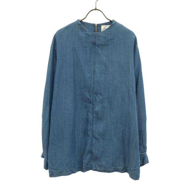 AMERI UNDRESSED アメリ 長袖 ノーカラー プルオーバー シャツ M ブルー バックジップ レディース