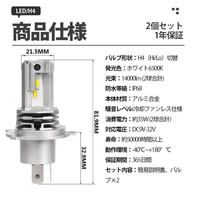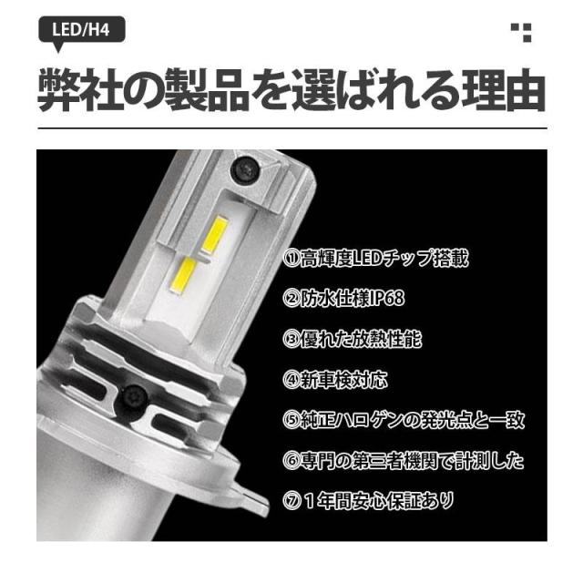 H4 新車検対応 高品質LEDチップ 明るい 最新h4 led 車用 ledヘッドライト 改良版 最新モデル 一体型 LEDバルブ 2個入 工具不要 取付簡単 最新仕様 H4 LEDヘッドライト Hi/Lo 車/バイク用 16000lm DC12V/24V兼用 6500K IP68防水 説明書 ledヘッドライト h4 車検対応 ヘッドライト