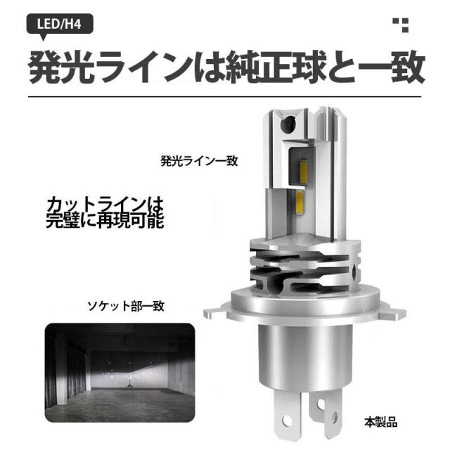 H4 LEDヘッドライト 車 バイク用 2個入 16000lm Hi/Lo切替 純正サイズ 車検対応 6500K LEDバルブ ヘッドライト 超高輝度 低消費 長寿命 超コンパクト 一体式