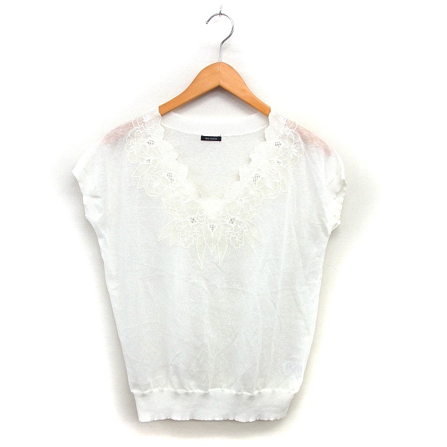 【中古】ユノートル une autre レース サマーニット セーター リネン混 透け感 Vネック リブ 半袖 白 ホワイト /NT15