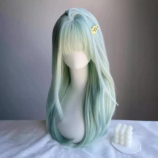 ウィッグ レディース フルウィッグ ロング 前髪あり 可愛い かわいい 大人用 コスプレ ロリータ ゴスロリ コスチューム 原宿風 仮装 超自然 ブルー 仮装 かつら 自然 小顔 変装 文化祭 学園祭 イベント 演劇 舞台 ミントグリーン dp006m6m6m6
