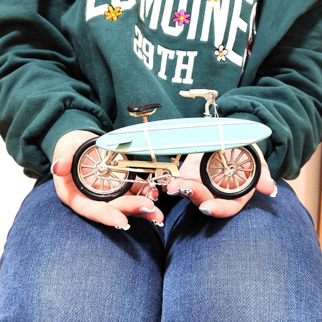 ヴィンテージ 置物 ノスタルジックデコ ビーチクルーザー 自転車 おしゃれ アンティーク オブジェ ビンテージ ホワイト ブリキ製 アメリカン