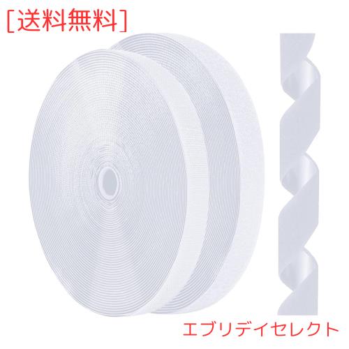 【商品仕様】パッケージ内容:強力面ファスナー オス1巻+強力面ファスナー メス 1巻、サイズ:幅2.5cm×長さ5m(オス・メス各5m)、カラー:ホワイト。ハサミで好きな長さに切ります。
