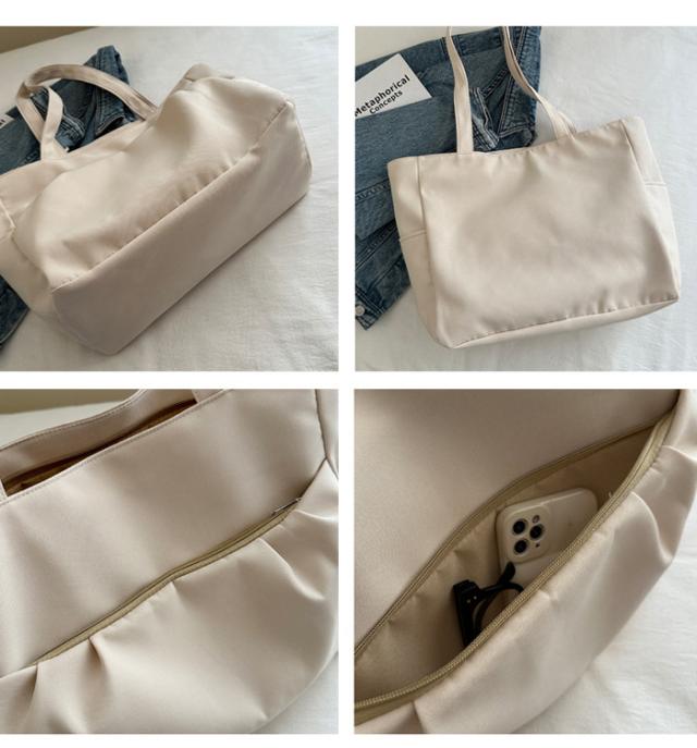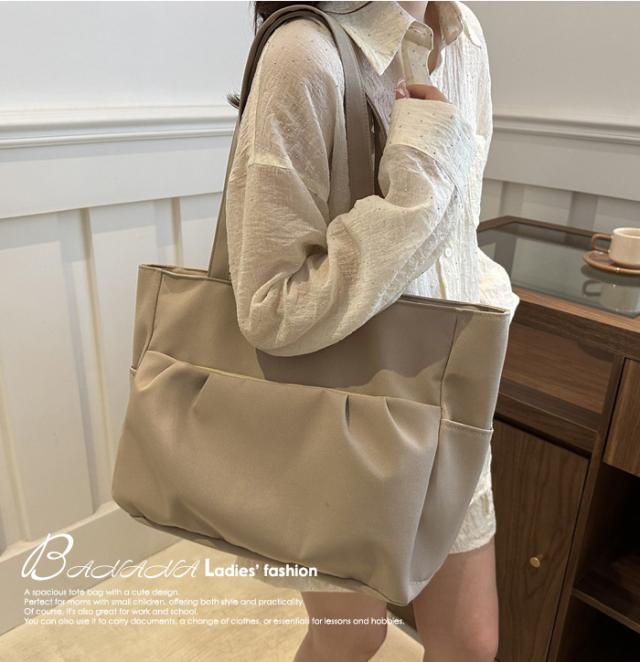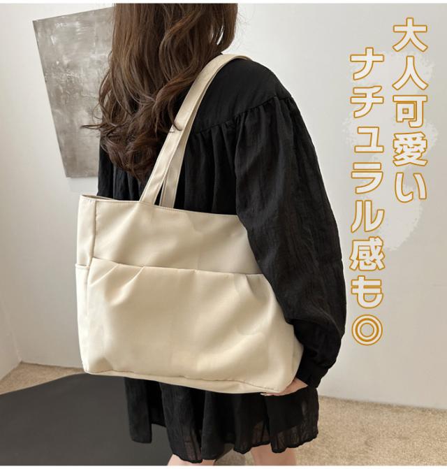| オールシーズン使えるトートバッグです。 厚手の上着を着ても肩に掛けられる余裕のあるハンドルサイズ。 シンプルデザインで合わせる服を選ばないのも魅力♪ 大人可愛いフロントのギャザーポケットはファスナー付きで防犯上も安心。 トートバッグ本体の開閉もファスナー式です。 |
