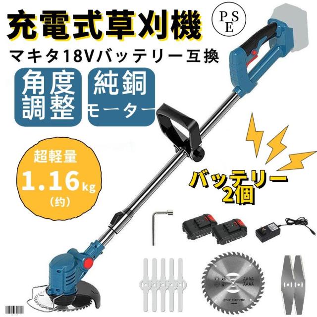 草刈り機 充電式 草刈機 電動草刈機 バッテリー2個 替刃8枚付き 女性 21V コードレス 多機能 電動刈払機 伸縮式 3種類替刃 枝切り 軽量 芝刈り機