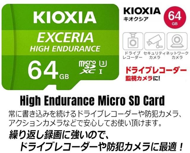 KIOXIA 高耐久microSDXCメモリカード 64GB UHS-I Class10 U1 V30 A1 100MB/s SDアダプター付き KEMU-A064GBKドラレコ向け キオクシア EXCERIA
