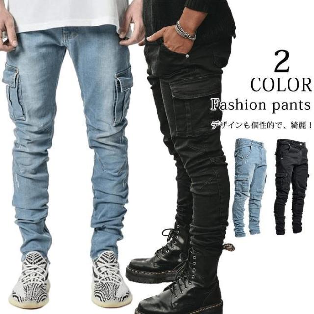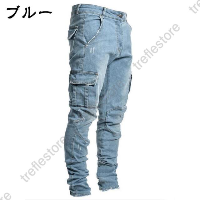 デニムパンツ メンズ スキニーデニム ジーパン ジーンズ カーゴパンツ 作業着 パンツ ワークデニム ジョガーパンツ テーパード 秋冬
