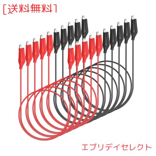 Cleqee はんだ付け みのむしクリップケーブル 赤黒 10本組 ワニ口クリップ付き絶縁ワイヤー 電気 0.5mm? 50cmテストリード ダブルエンド