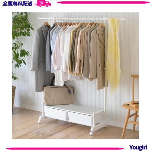 [山善] ハンガーラック キャスター付き (チェスト付き/高さ調節可能/伸縮/シングル) 幅93-148.5×奥行44.5×高さ110.5-160.5cm 組立品 マ