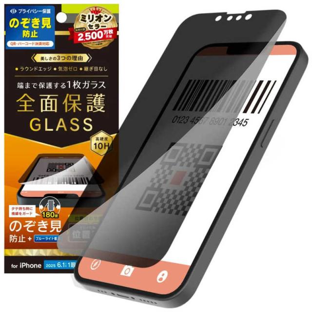 トリニティ iPhone 16e/ 14/ 13/ 13Pro フィルム フルカバー のぞき見防止 画面保護強化ガラス 位置ピタ 光沢 TR-IP25S-GLI-CSLPVCC