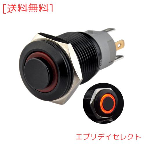 Ulincos 防水 押しボタンスイッチ U16F2 オルタネート型 1NO1NC SPDT ON/OFF ブラック メタル 12V レッドLED 16mm (赤 ブラック)