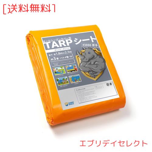 ◆商品名:GUARD SHIELD オレンジシート #3000 厚手 ブルーシート 防水シート ハトメ付き 屋根 防水屋外 1.8mx2.7m 約3畳 UVシート ターポリン