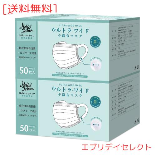 [Hellozebra]マスク 不織布 幅広耳紐 耳が痛くなりにくい 三層構造 使い捨てマスク 個包装 プリーツ型マスク 男女兼用 大人用 100枚入