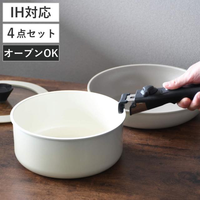 マルチポット 16cm IH対応 トルティーノ 取っ手が取れる セラミック加工 ( ガス火対応 着脱式 鍋 ソースパン 取っ手の取れる鍋 単品 片手鍋 セラミックコーティング オーブン対応 16センチ なべ ミニ アルミ製 軽量 ホワイト )