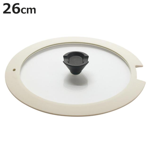 フライパン 蓋 26cm用 ガラス蓋 シリコン縁付き トルティーノ 鍋蓋 ( ふた 鍋ふた 専用ガラス蓋 窓付き 26センチ フタ 鍋用 ガラスふた 蒸気穴付き 調理器具 ホワイト )