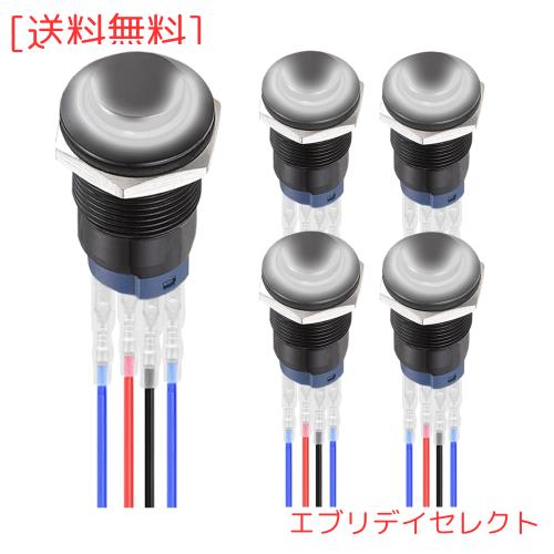 パッケージ内容: 端子ワイヤ付きホワイトLEDラッチングプッシュボタンスイッチ5個。