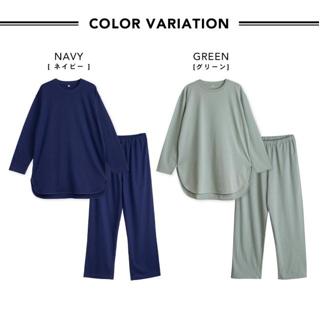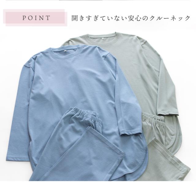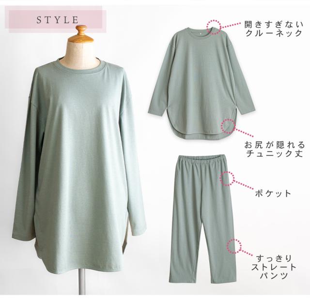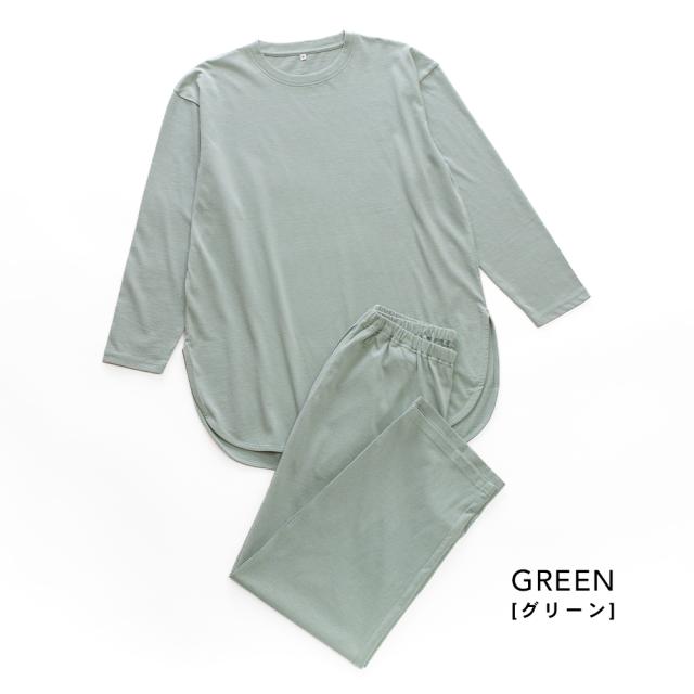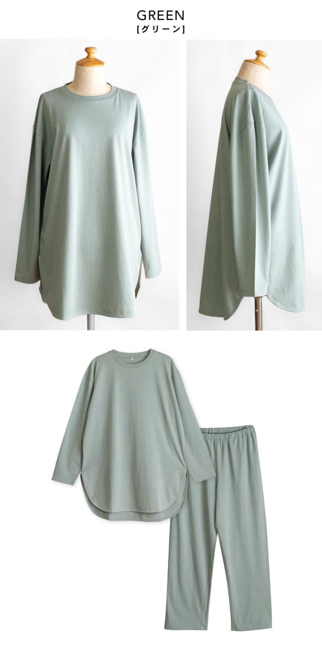 人気のくすみカラーで、優しく落ち着いた印象のルームウェアです。