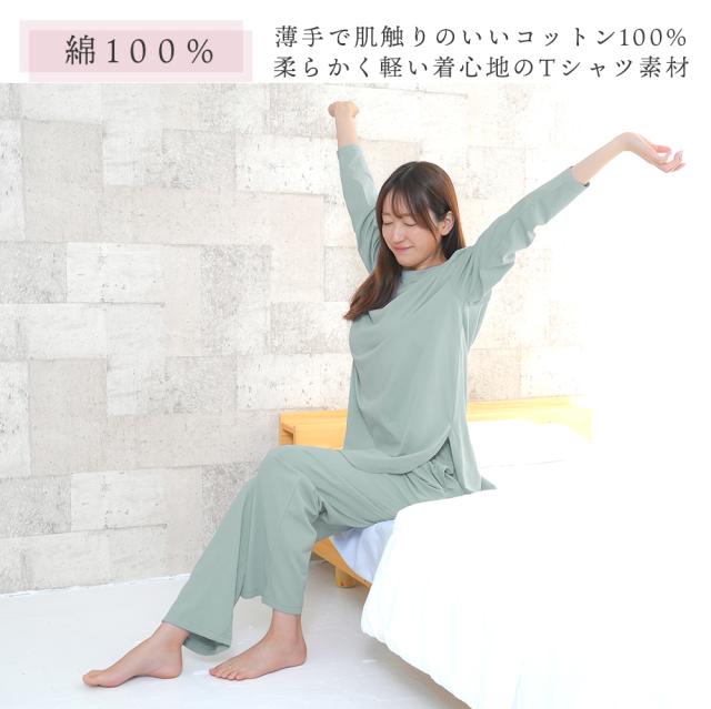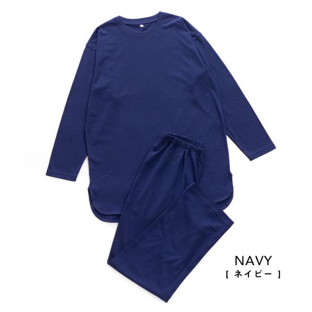 パジャマ レディース 綿100% 長袖 春 夏 初秋 柔らかく軽い薄手の快適Tシャツ素材 チュニック丈 ラウンドヘム M L LL 3L 部屋着 ルームウェア プレゼント 母の日