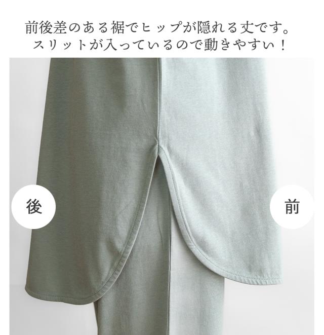 ●トップス仕様:長袖/チュニック丈/ラウンドヘム/サイドにスリット