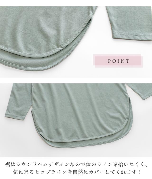 チュニック丈で前後差のあるラウンドヘム仕様で体のラインを拾いにくく、気になるヒップラインを自然にカバーしてくれます。
