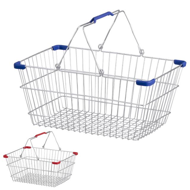 シンプルでサイズのバリエーションが豊富なワイヤーバスケットは、ご家庭内だけでなく店内カゴとしてや、お店のディスプレイ用としてもおすすめです。ハンドルの持ち手部分とバスケットのコーナーに付いたポップなカラーのプラスチックパーツが、バスケットのアクセントになっています。