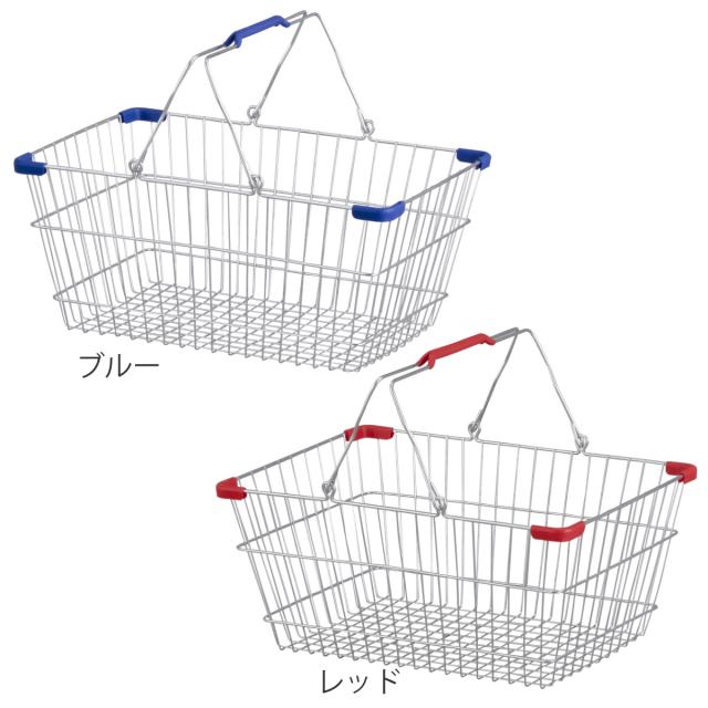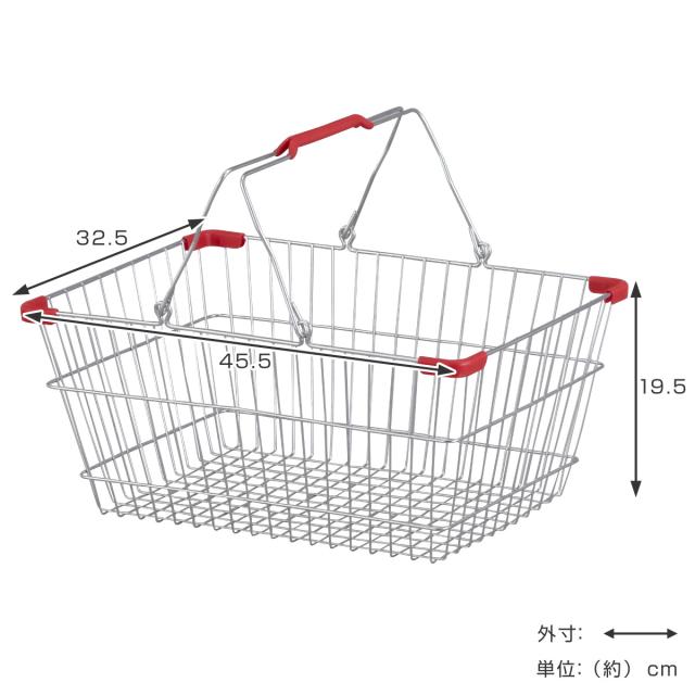 レジかご ワイヤープラスチック ハンドル L 幅45.5×奥行32.5×高さ19.5cm ( ワイヤーバスケット バスケット かご 収納バスケット 収納ボックス 収納ケース 収納 カゴ 角型 持ち手付き 小物収納 小物入れ ディスプレイ おしゃれ )