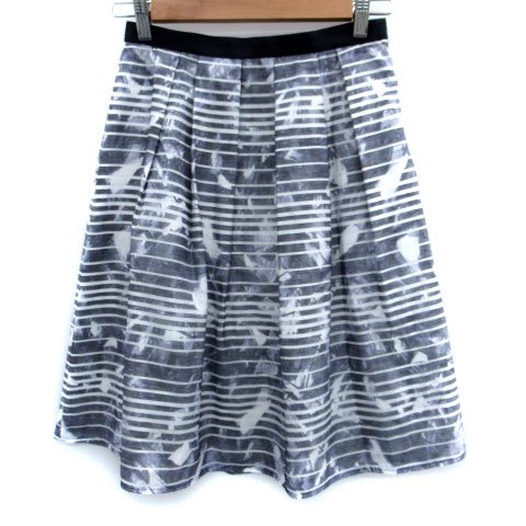 【中古】ケティ KETTY フレアスカート ミモレ丈 ボーダー柄 総柄 2 ブルーグレー /SM30 レディース