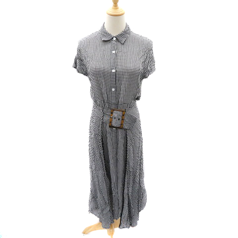 【中古】オットー シャツワンピース ミモレ丈 半袖 ウエストベルト付き ギンガムチェック柄 M ブラック レディース
