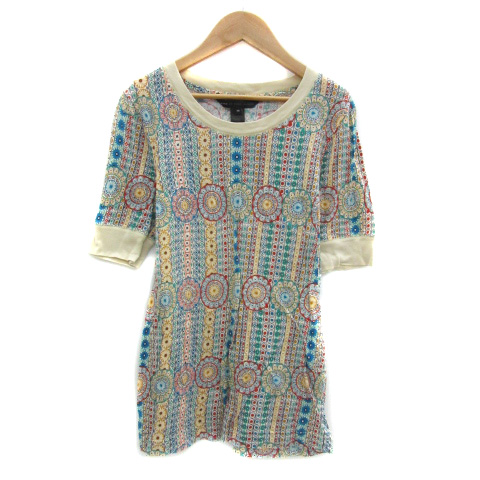 【中古】マークバイマークジェイコブス Tシャツ カットソー 半袖 ラウンドネック 総柄 XS アイボリー レディース