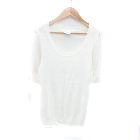 【中古】パオラフラーニ PAOLA FRANI ニット カットソー ラウンドネック 半袖 切替 42 L オフホワイト