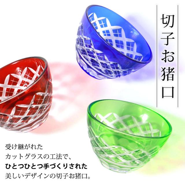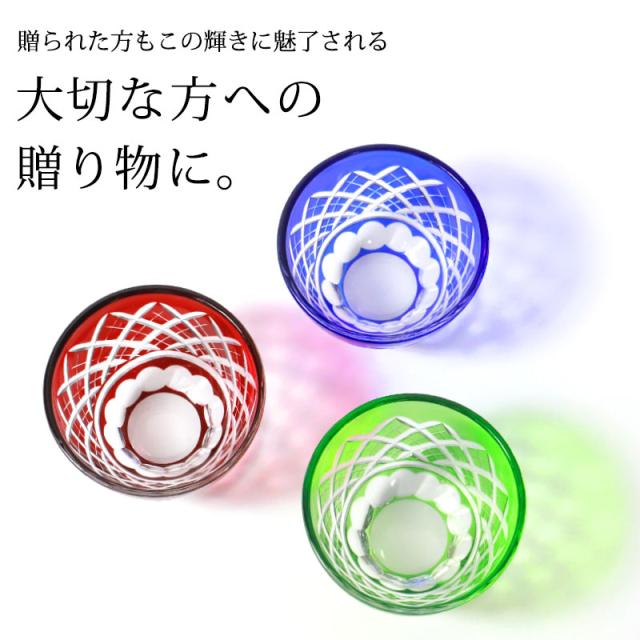 切子お猪口 単品 50ml きりこ 切子 おちょこ 日本酒 冷酒 退職祝い 還暦祝い プレゼント ギフト おしゃれ ガラス 父の日 母の日 食洗機対応 記念品 レッド コバルトブルー グリーン 酒器 キリコ