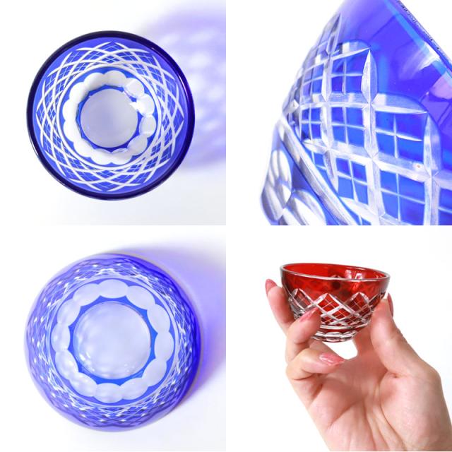 受け継がれたカットグラスの工法で、ひとつひとつ手づくりされた切子お猪口(おちょこ)です。