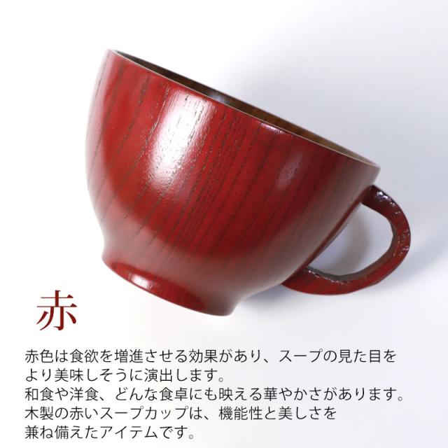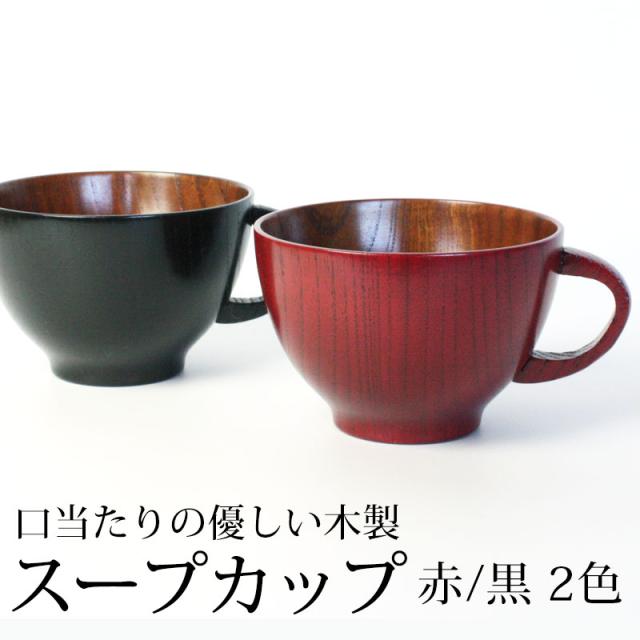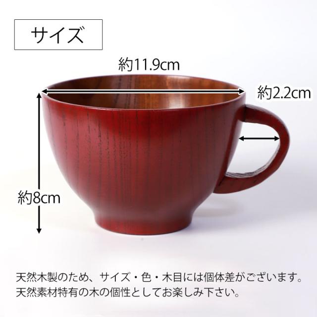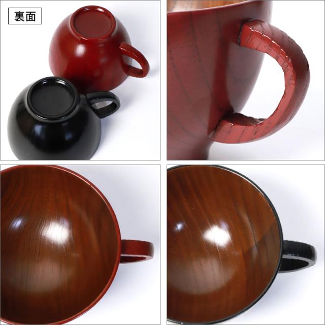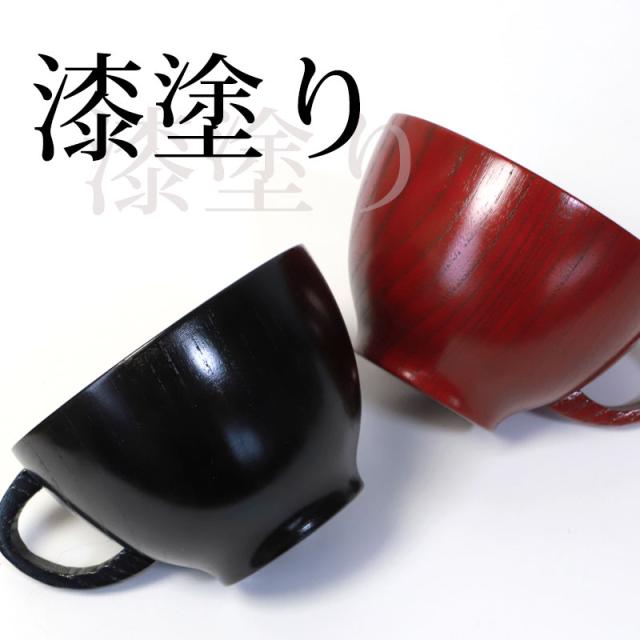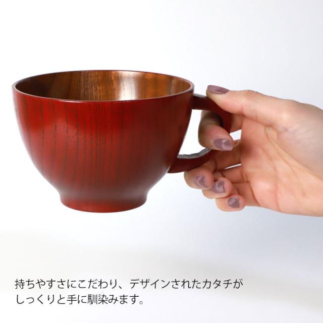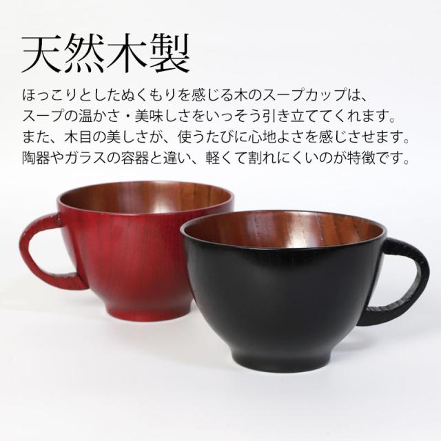 スープカップ 大きめ 天然木製 赤 黒 スープボウル 汁椀 お椀 おわん 漆器 漆椀 お碗 持ち手 取っ手付き おしゃれ モダン 軽量 軽い 割れにくい 漆塗り 大き目