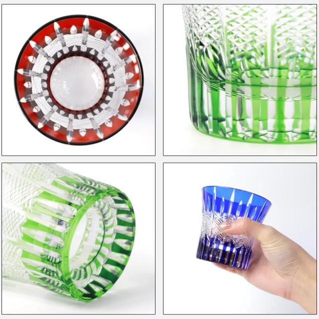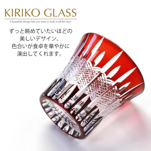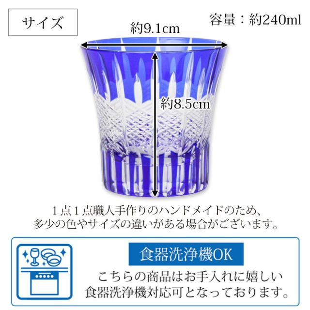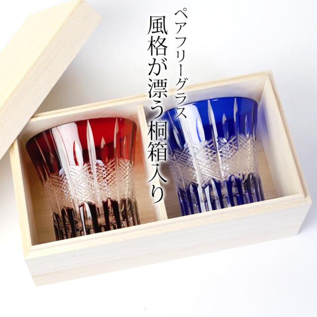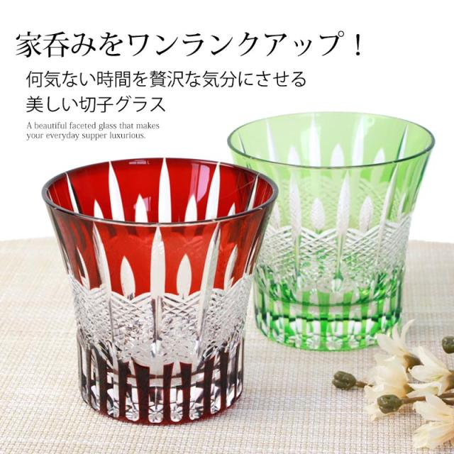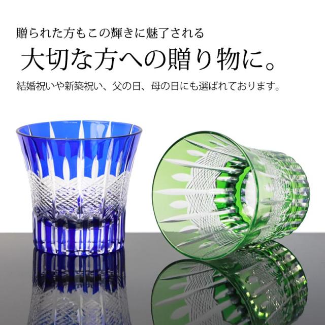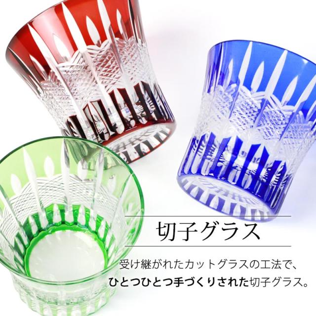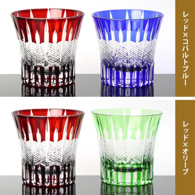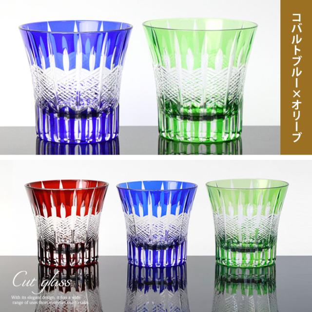 切子グラス 240ml ペア セット 桐箱入り ギフト プレゼント おしゃれ きりこ ガラス 食洗機対応 ロックグラス コップ 退職祝い 還暦祝い 赤 レッド コバルトブルー オリーブ 青 緑 酒器 日本酒 硝子 お祝い キリコ