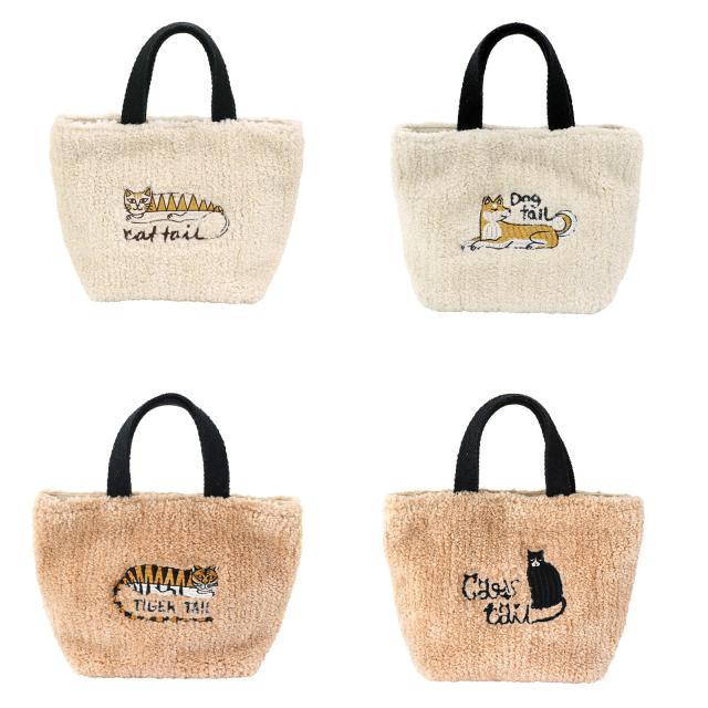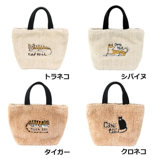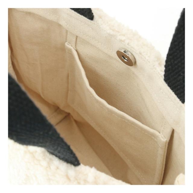 温かみのあるボア素材にアニマルパターンを施した、季節感あふれるトートバッグです。