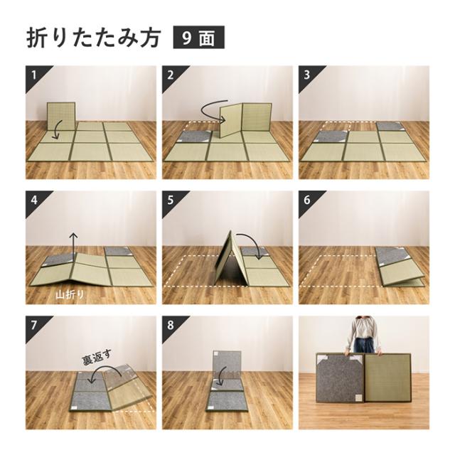畳 マット 敷くだけ 置き畳 約225×225cm たためる連結畳 鎌倉 9面 (H) たたみ い草 折りたたみ 連結畳 いぐさ コンパクト マットレス 和室 和風 子供部屋 寝室 たためる 畳スペース 滑り止め ズレにくい 天然 調湿 厚さ約1.1cm 防音対策 引っ越し 新生活