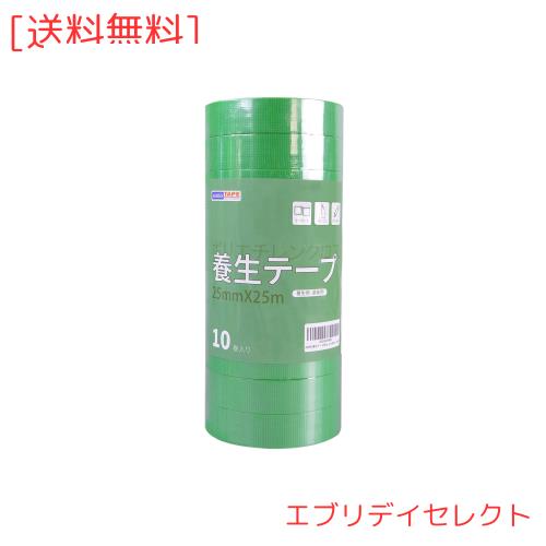 ◆商品名:ADHES 養生テープ ガムテープ 緑 はがせる 仮固定用 幅25mm*長さ25m 10巻セット 緑313