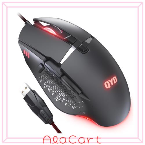 QYD Q309 ゲーミングマウス 有線 ゲーミングPCマウス 7200 調節可能DPI エルゴノミクスデザイン USBゲーミングマウス 大きな手にも対応 8