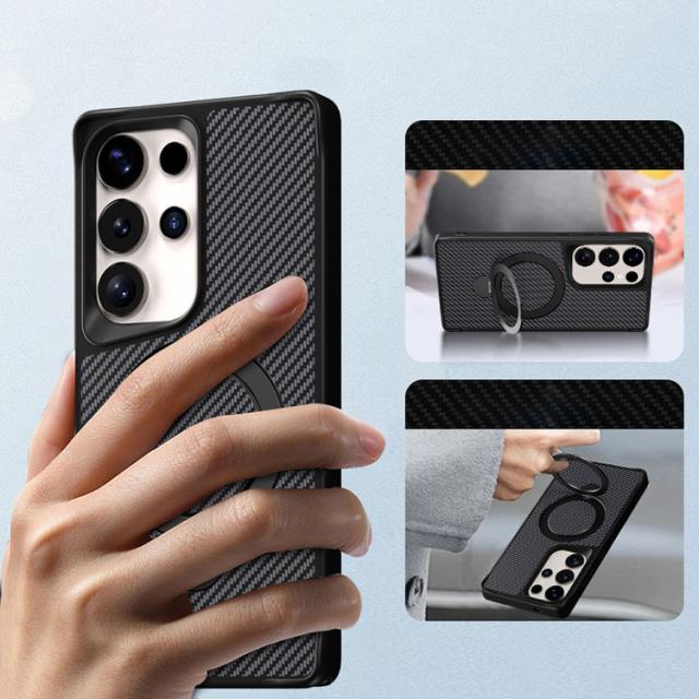 Galaxy S25 ケース 耐衝撃 S25+ S25 Ultra カバー Qi充電 ワイヤレス充電 対応 シンプル カーボン調 背面ケース スタンド機能 リング付き Samsung サムスン ギャラクシー S25/S25 プラス/S25 ウルトラ アンドロイド おすすめ おしゃれ