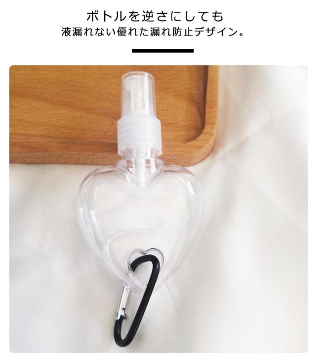 | カラビナ付きかわいいハート型小分けボトルが登場。【50ml】【7個セット】【押し出しタイプ&スプレータイプ2種類】 化粧水などスキンケアはもちろん、アルコールジェルやハンドジェルを入れて、いつでもどこでも手の消毒がとても便利。 ボトルを逆さにしても液漏れない優れた漏れ防止デザイン。 ベビーカー、バッグ、ベルトなどに付けて持ち運びがとてもラクラク。 | |