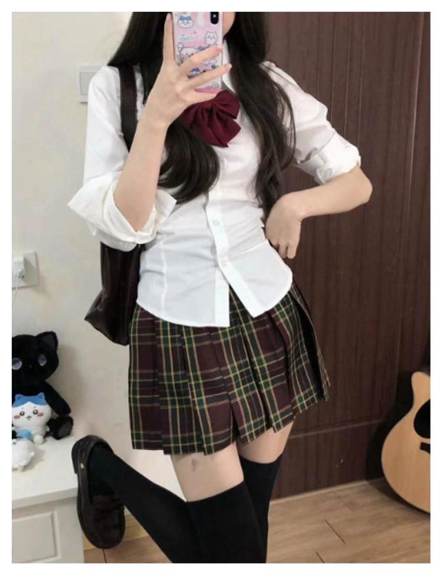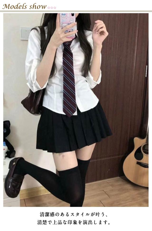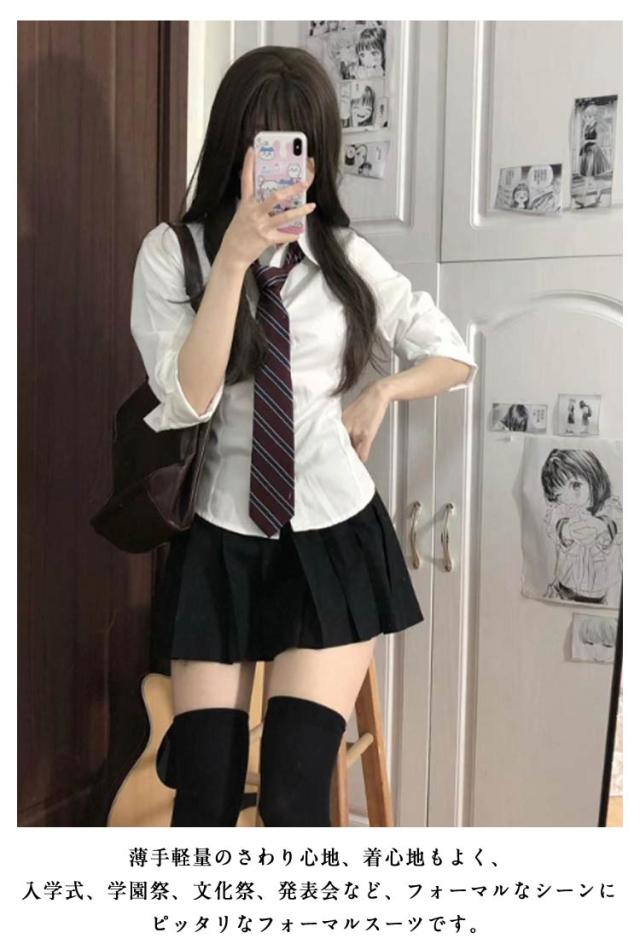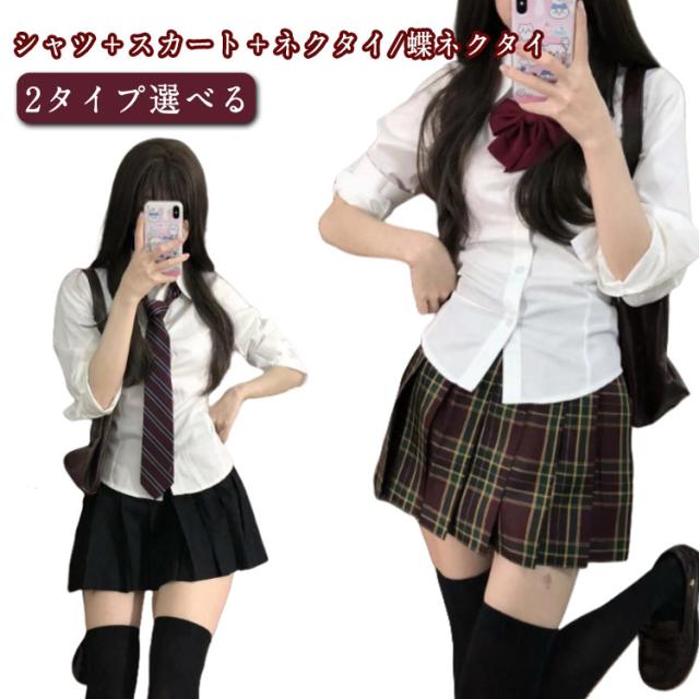 韓国 制服 可愛い セットアップ シャツ+スカート+ネクタイ/蝶ネクタイ レディース コスプレ プリーツスカート ブレザー スクール 長袖 通学 春 秋 カジュアル 学院風 コスプレ コスチューム 3点セット ミニスカート おしゃれ 仮装 上下セット