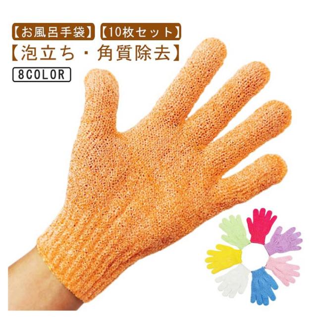 お風呂用 手袋 10枚セット ミトン 泡立ち 角質除去 浴用手袋 五本指 体洗う シャワー バス グローブ 垢すり手袋 体洗い 沐浴介助 介護用品 両面用 入浴用品 お風呂用 家庭用 カラフル 送料無料