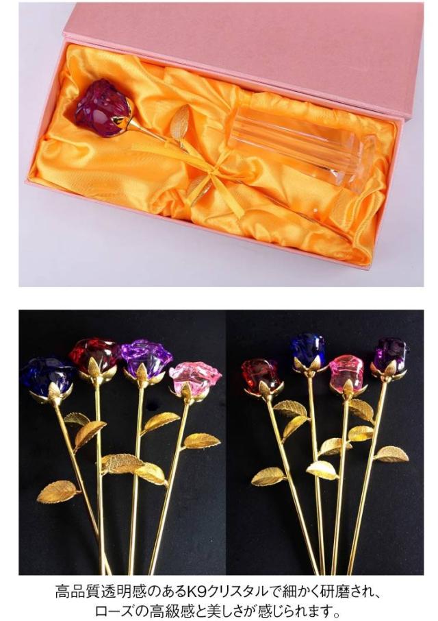| 枯れないクリスタルバラ。 女性への完璧プレゼントとしておすすめ! 高品質透明感のあるK9クリスタルで細かく研磨され、ローズの高級感と美しさが感じられます。 誕生日プレゼント、結婚記念日プレゼント、クリスマス、告白、バレンタインデー、母の日、結婚式などの女性のためのユニークな選択。 | |