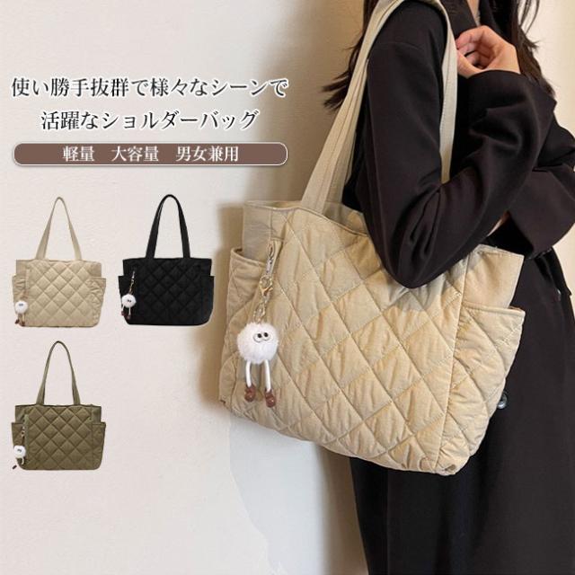トートバッグ レディース キルティング 中綿入り ふわふわ 大容量 軽量 肩掛け 内ポケット サイドポケット カジュアル シンプル 出し入れ簡単 持ち運び 通勤通学 旅行 実用性 カラバリ豊富 メンズ