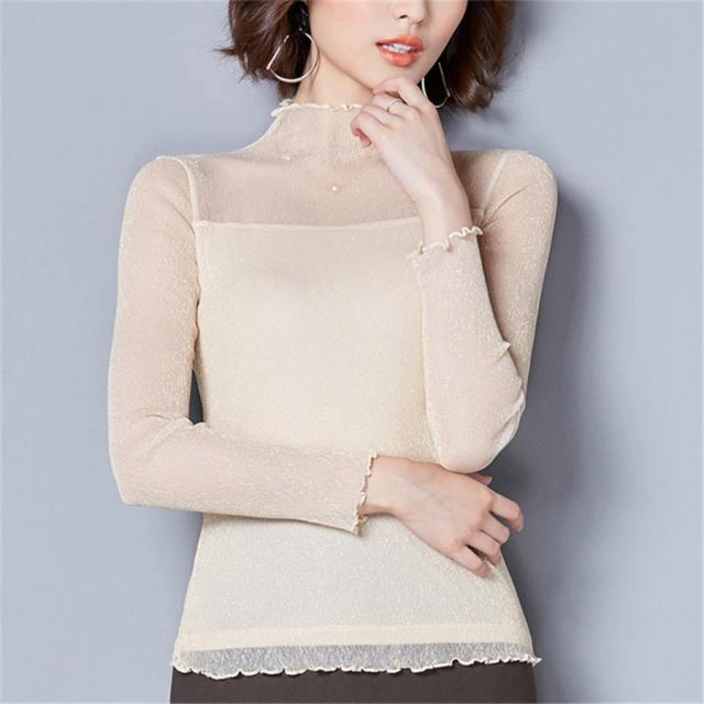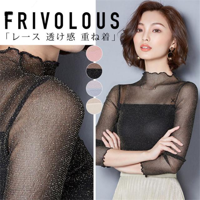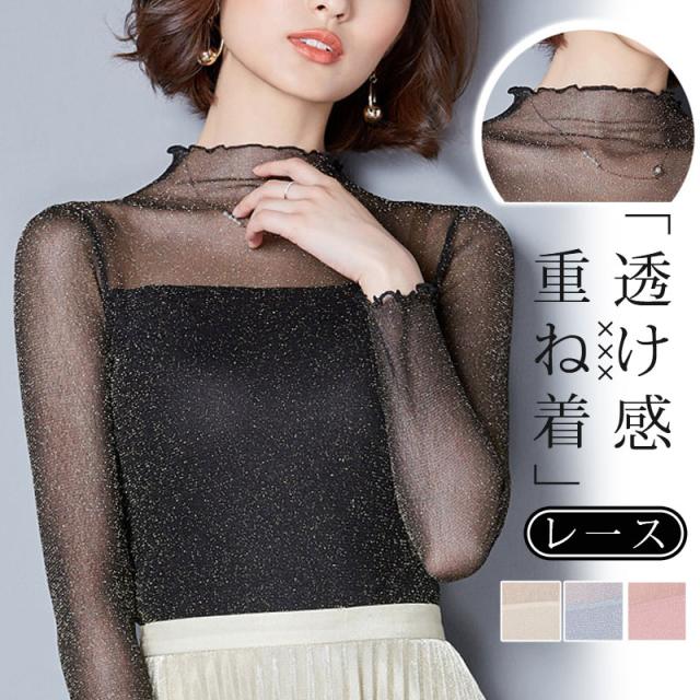 チュール シースルー トップス Tシャツ インナー タートルネック コーデ レイヤード 輝く 薄手 重ね着 カットソー 春 夏 秋
