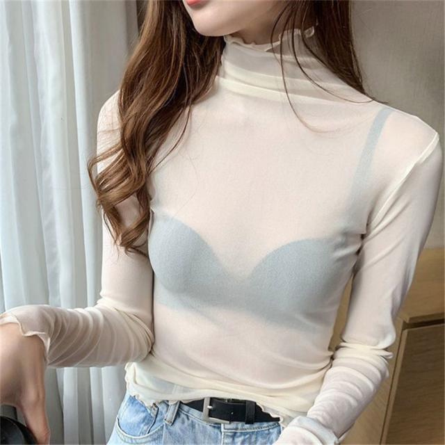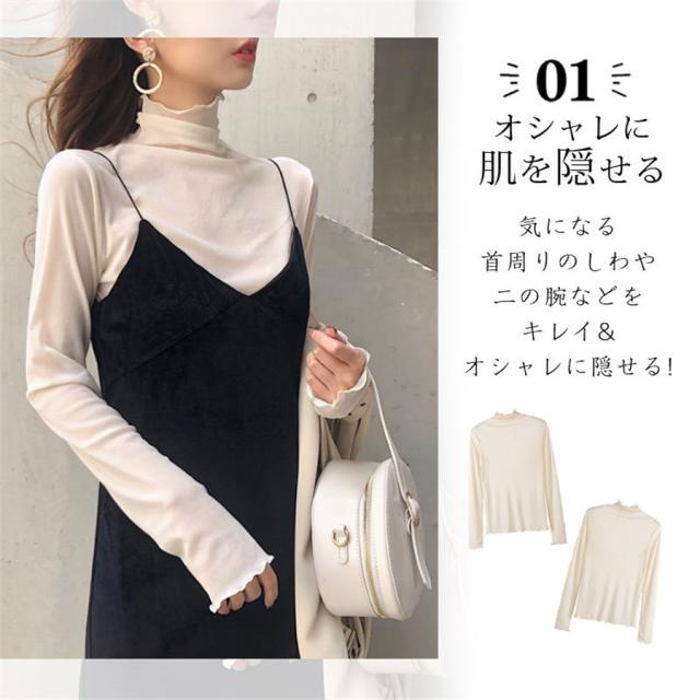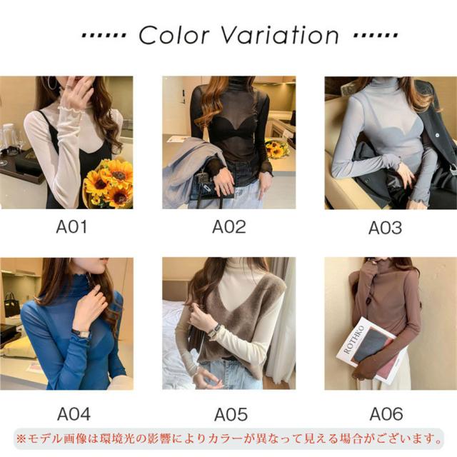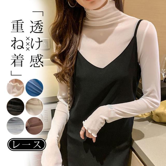 チュール シースルー トップス Tシャツ インナー タートルネック コーデ レイヤード 長袖 薄手 重ね着 カットソー 春 夏 秋
