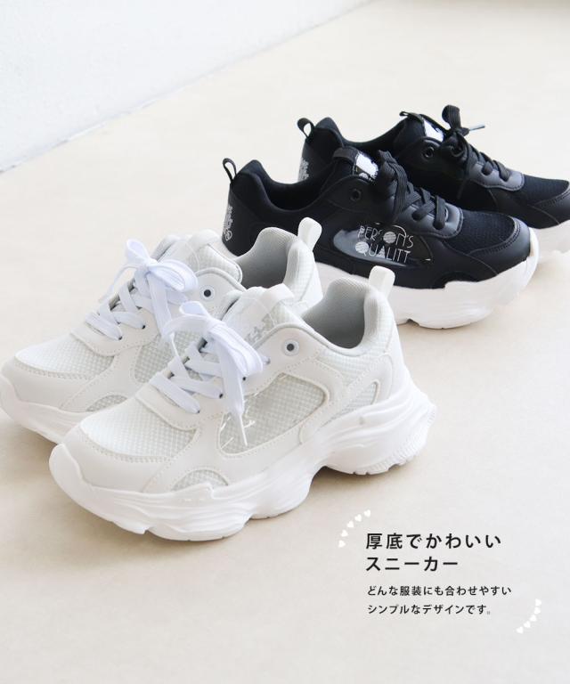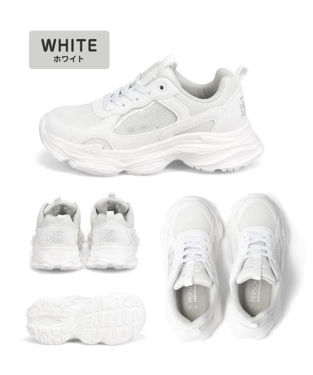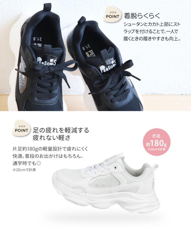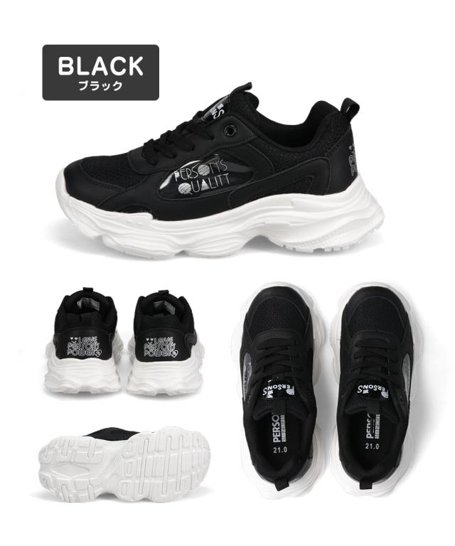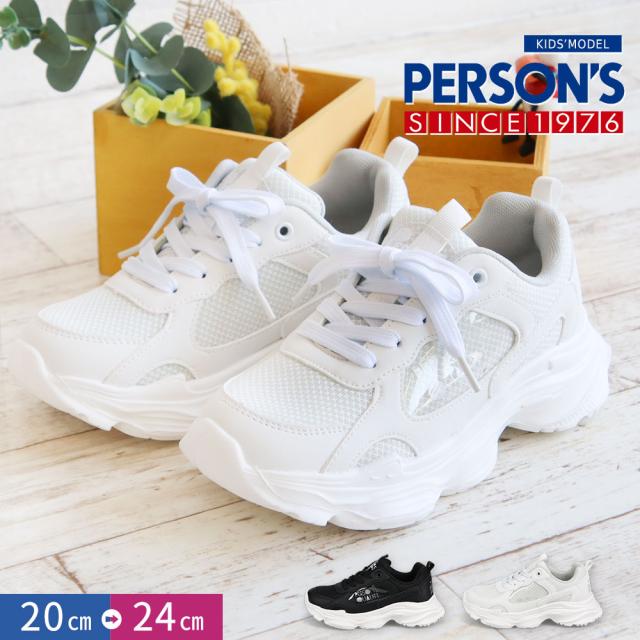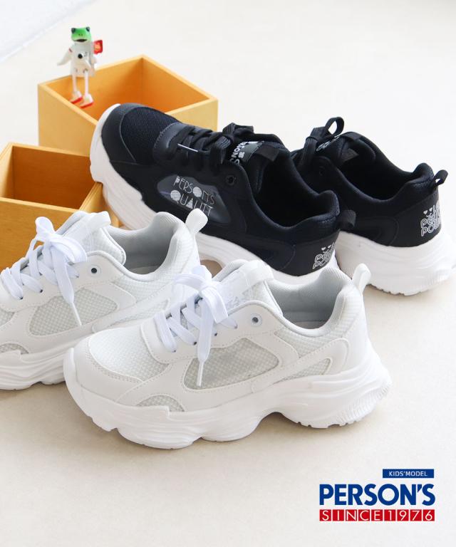パーソンズ スニーカー キッズ ジュニア 女の子 厚底 履きやすい 子供靴 紐靴 ダッドスニーカー メッシュ カップインソール かわいい おしゃれ 黒 ブラック ホワイト PERSON'S psj-039