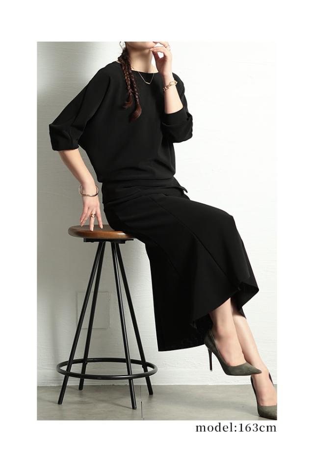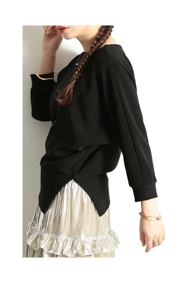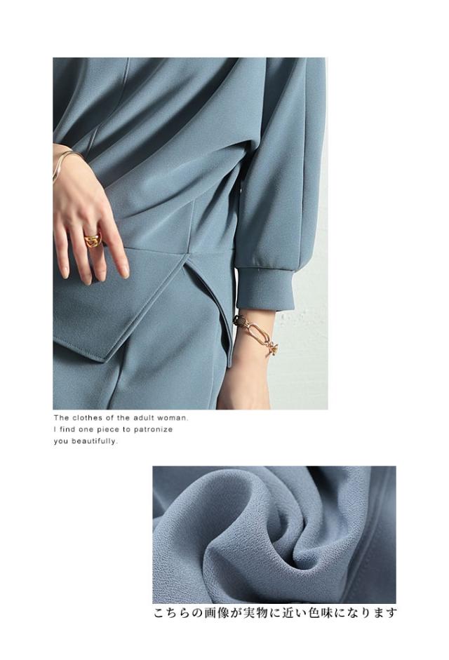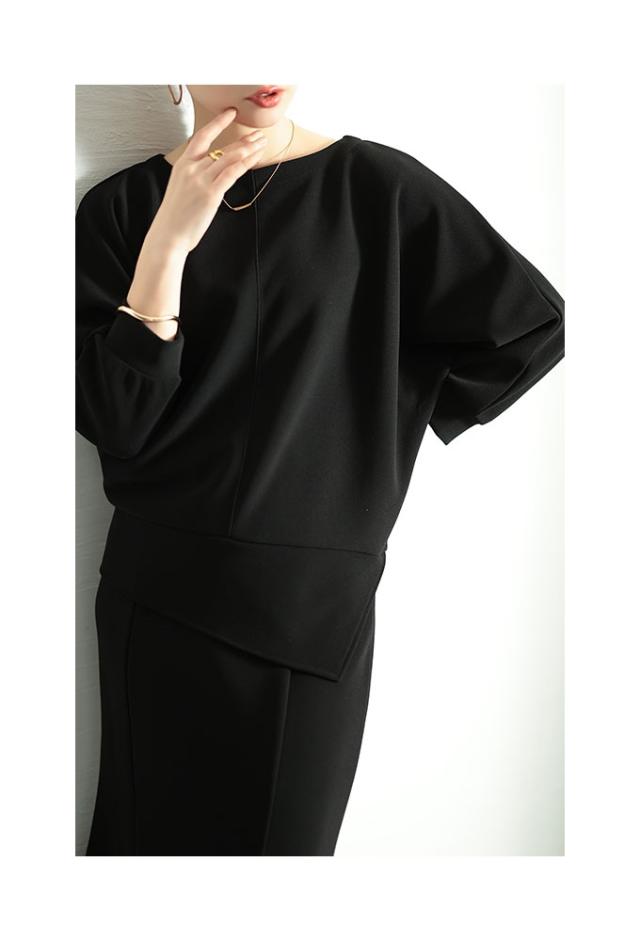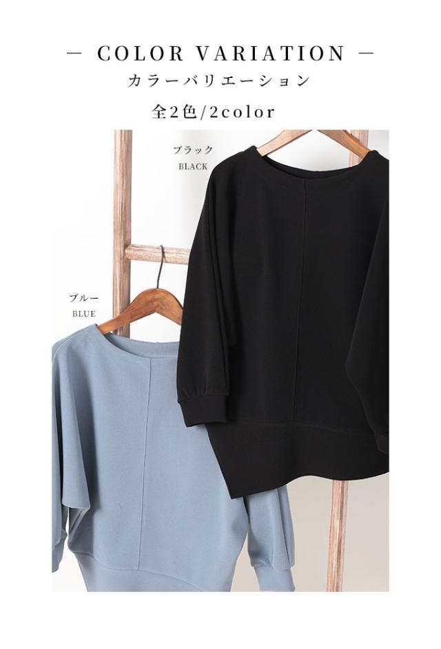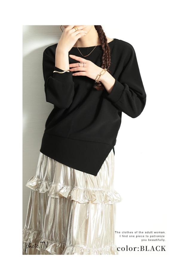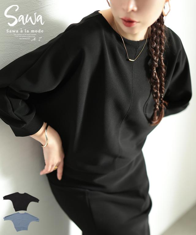 春新作 こなれるヒトクセアシンメトリープルオーバー レディース ファッション トップス プルオーバー アシンメトリー ドルマン スリット 7分袖 無地 黒 青 30代 40代 50代 60代 サワアラモード sawaalamode otona 大人 cawaii 可愛い 洋服 かわいい服 swjun-942s