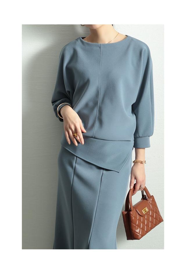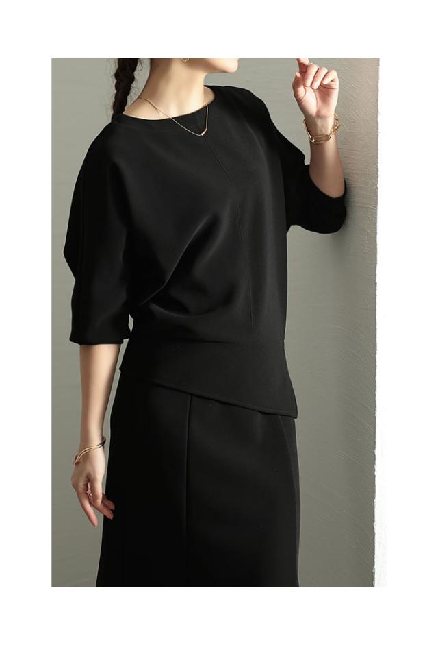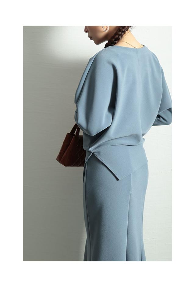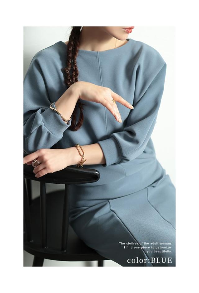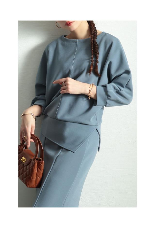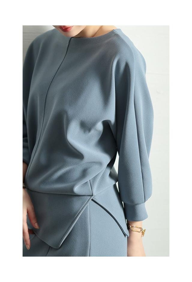 春新作 こなれるヒトクセアシンメトリープルオーバー レディース ファッション トップス プルオーバー アシンメトリー ドルマン スリット 7分袖 無地 黒 青 30代 40代 50代 60代 サワアラモード sawaalamode otona 大人 cawaii 可愛い 洋服 かわいい服 swjun-942s