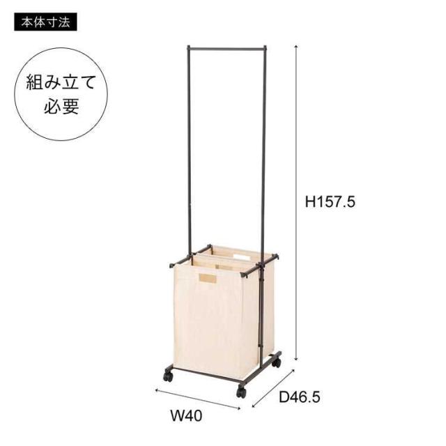 ハンガーラック おしゃれ 頑丈 シンプル スリム 40cm キャスター付き ランドリーラック ランドリーハンガー コンパクト 省スペース バスケット付き 2個 取り外し 衣類 収納 洗濯物入れ 物干し スチール ダークグレー ホワイト 白 リビング 一人暮らし 寝室 新生活 インテリア